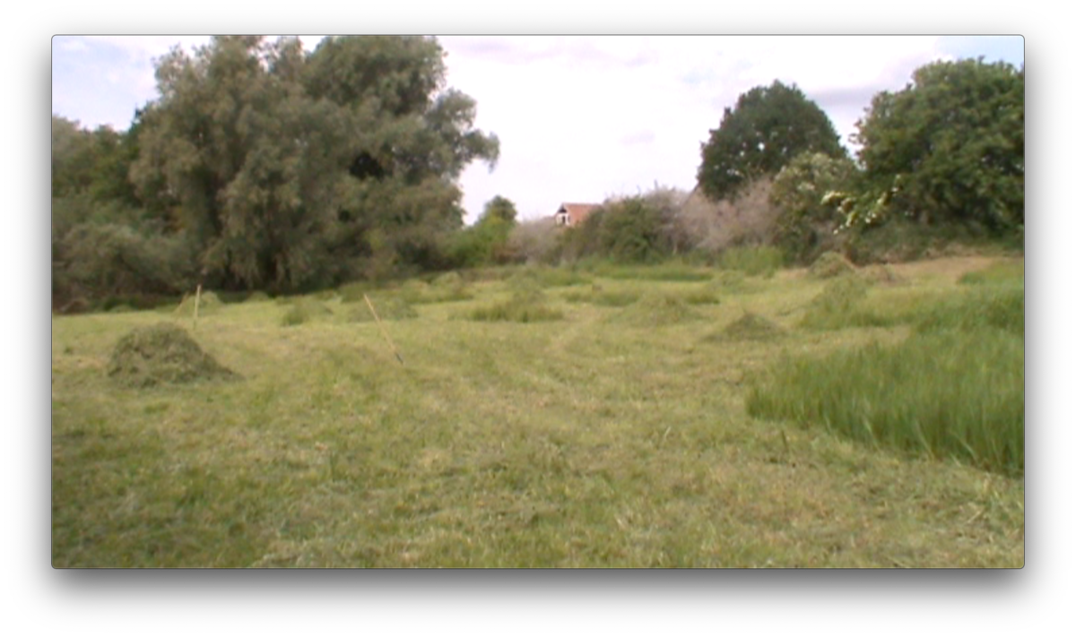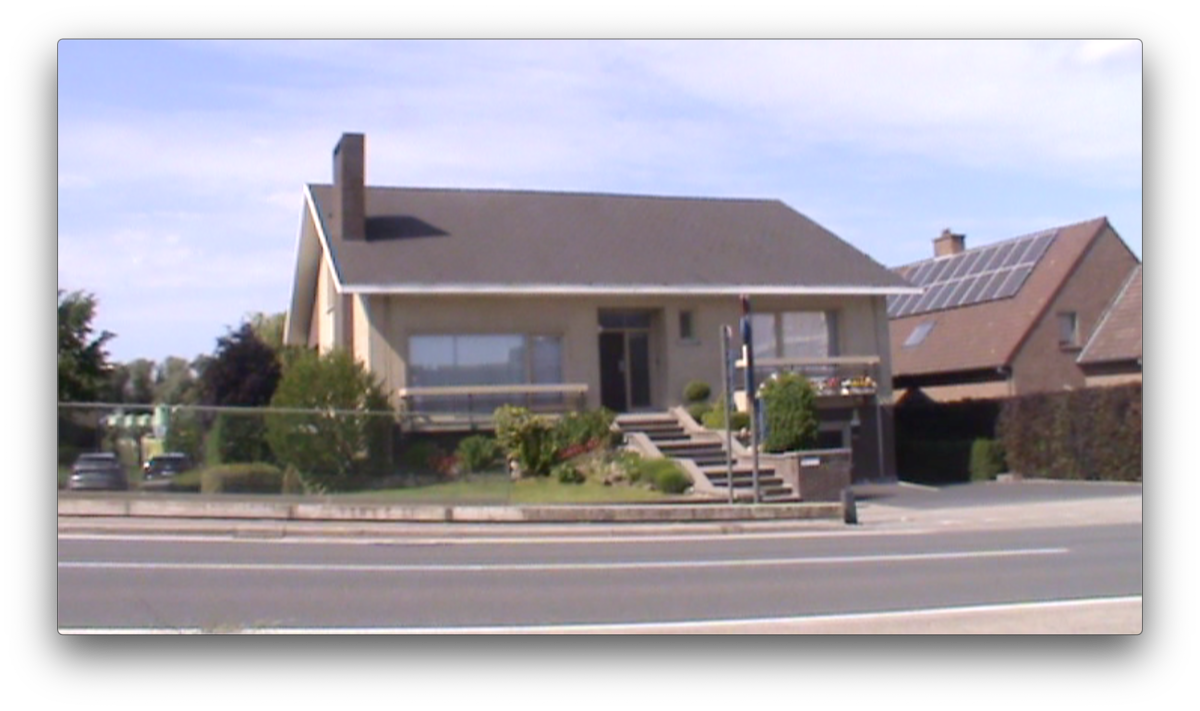 The path from Harelbeke station to the mushroom farm is pleasant. Once you cross a part of the city and a bridge you follow a wide path along the river. You pass a few industrial sites on both sides of the river. They stand in contrast to the water, sky, trees and pastures that envelop them. I pass only a few bikers, and some curious cows say hello on the way. They stand in the forefront of a derelict industrial building. I continue and reach the mushroom farm, it is right on the river. It looks small: just two long hangars with an adjacent office looking building. Some of the large garage doors are open but I see no one. I hear some voices from inside, I think I recognize Polish. After waiting for a few minutes to try to see anyone I pass the facility and continue further down along the river. I come across a peculiar sight: A horse dressed in grey, stands in front of a wagon onto which a crane arm, controlled by a man sitting on the wagon, loads freshly cut long grass. Further there are more men, mostly large and tattooed, raking the long grass on a field further behind the horse with pitch forks. They do this only twice a year, maintaining this otherwise natural zone along the river. They use the horse and wagon because apparently the ground there is too wet and swampy for any trucks. It’s a very hot day and the men are tired. The machine on the wagon is very loud. The horse is patient, he is used to this work. As the men take their lunch break I leave this green oasis and go back along the river towards the mushroom facility. I pause again waiting to see anyone. There is one man walking along outside, but he quickly disappears into one of the open garage doors. I take the crossroad that leads away from the river and into the town of Bavikhove. The streets are extremely quiet. I don’t see a single person. There are cars parked in front of homes and a lot of the blinds in the windows are pulled down. On one street I pass the mailman. I find myself on what seems to be the main square in town. There is a large church and a school. The only sound comes from inside the school of children playing in the courtyard. I take a different route back to Harelbeke that goes through the town outskirts. When leaving Bavikhove I pass a billboard announcing Bavikhove feest in July.