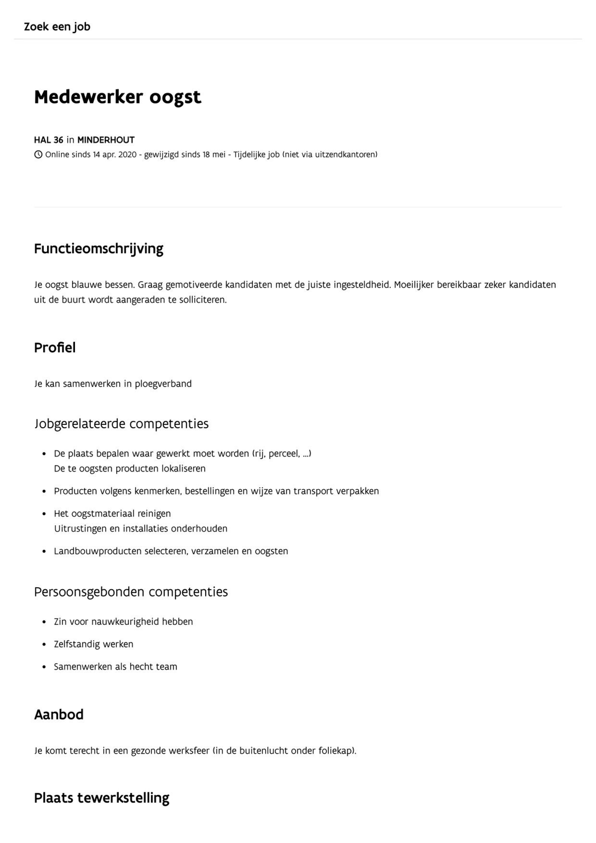 Selectie van de online vacatures in de zoektocht naar een geschikt bedrijf om aan de slag te gaan.