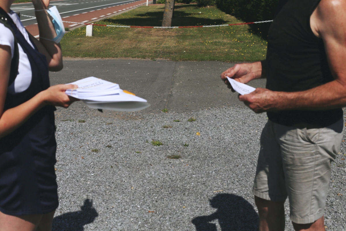 Het ontmoeten krijgt een uitgesproken gedaante langs de steenweg, het doet zich eerder voor in (overgangs)momenten dan op daartoe ontworpen publieke plaatsen: het in en uit de wagen stappen, het binnens- en buitenshuis gaan… Publieke plaatsen, ontworpen met voorbedachte rade, zijn hoe dan ook een zeldzaamheid. De (grind)parking (van de krantenwinkel) is één van de enige aanduidbare plaatsen die ik kan bedenken, het neemt de spontane functie van het ontmoeten over, en geeft er een plaats aan. Als de ontmoeting uitblijft door een grijze dag of het verkeerd gekozen vertrekuur doen taferelen zich niet voor. Ik moet ze zelf creëren door aan te bellen bij huizen of publieke interieurs (bakkerij, café…) binnen te gaan. Plots lijkt ieder huis een mogelijkheid. Ik probeer mijn beslissingsmechanisme te achterhalen, verzin regels, probeer de huizen te lezen en op zoek te gaan naar een aanleiding om aan te bellen: huisnummer 1, een huis op een ‘heuvel’, een huis in een ‘dal’, een sprekende vorm, een palmboom… Deze methode legt netwerken langs de lijn bloot, de doorverwijzing naar buren, overburen, vrienden of familieleden wonend langs de weg die frequente dromers blijken te zijn. Deze beschouwing werd geschreven in afwachting van het ophalen van de tien droomlogboeken die nu worden ingevuld.