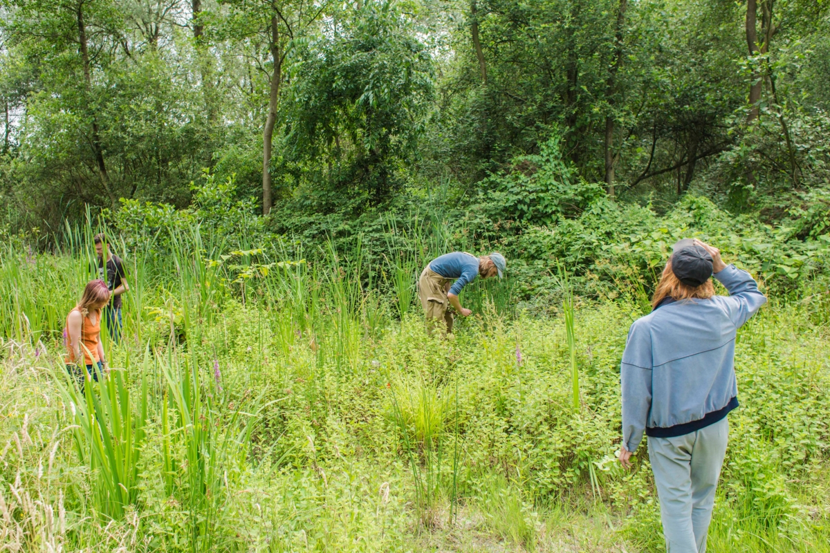 Tim Theo Deceuninck nam de groep mee op een wandeling doorheen de Hobokense Polder. Dit natuurgebied zit vol contrasten: aanvankelijk voorbestemd tot het urbanisatieproject ‘Polderstad’ werd het opgehoogd met zand afkomstig van de destijds aangelegde E17. Het project stierf een stille dood, bleef jarenlang braak liggen, en werd uiteindelijk uitgeroepen tot beschermd gebied. Tim Theo kent dit landschap als zijn broekzak en plaatste er ook verschillende van zijn land-camera’s. Onderweg oogstten we watermunt, dachten na over hedendaagse oogstrituelen en zagen enkele van de land-camera’s in werking. Hieronder vind je enkele van de tekstfragmenten die Tim Theo voorlas.