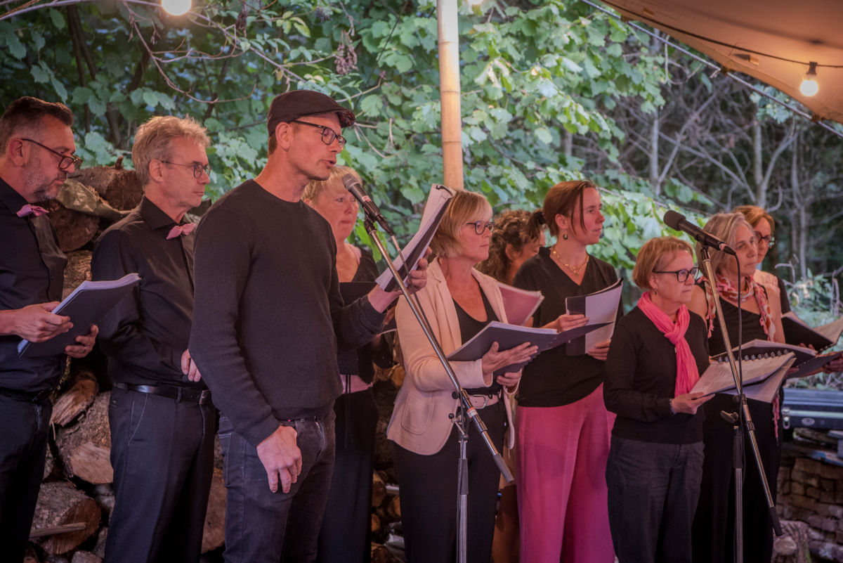 Daarnaast werkten ze ook samen met het lokale dorpskoor Het Dikkoor. Zij brachten de Sore Spot Song van Agripuncture in een bijzondere koorversie, een eenmalige vertolking die werd gepresenteerd op de openingsdag van Kunst & Zwalm.