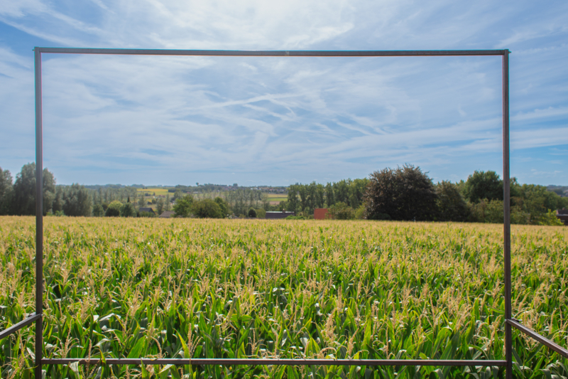 Voor Kunst & Zwalm bouwde een-twee aan een in-situ cinema, een sculptuur die het midden houdt tussen uitkijktoren, rustplek en tribune. Ze vertoonden er een landschapsfilm, serveerden popcorn met lokale smaken en lieten het publiek verdwalen in een zomers maïsveld.