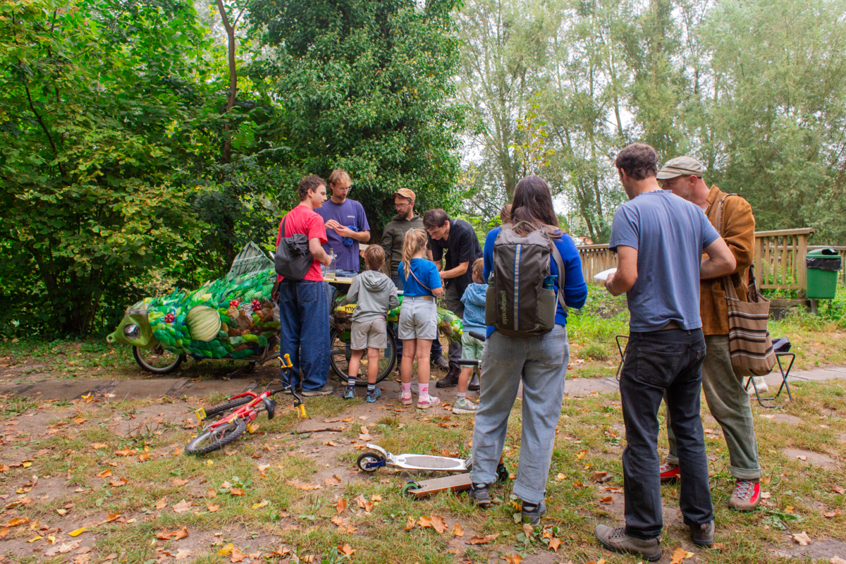 Hoe is het om te leven in, rond en onder de grond van Zwalm? Welke planten en vissen vonden hier een thuis en wat is zeldzaam, maar komt gelukkig nog steeds voor? Myvillages bracht een glimp van de biodiversiteit en geologische identiteit van dit stukje levend groen in beeld. Daarvoor tekenden ze de fauna en flora van Zwalm en gebruikten dit als basis om tattoos te ontwerpen. Hun mobiel Tattoo Station Zwalm bestreek de oevers van de Zwalm, met verhalen over wat er leeft en een aanbod van plaktattoos . Ze zitten de bezoekers graag dicht op de huid. Daarom kon je het laatste weekend je favoriete tijdelijke plaatje ook echt laten vereeuwigen op je lichaam.