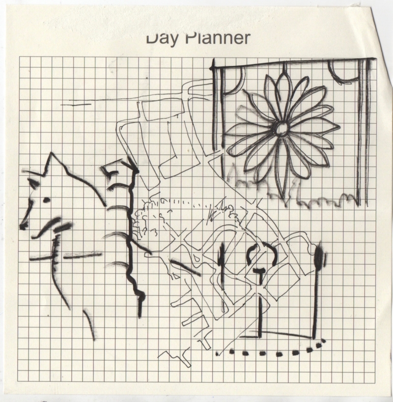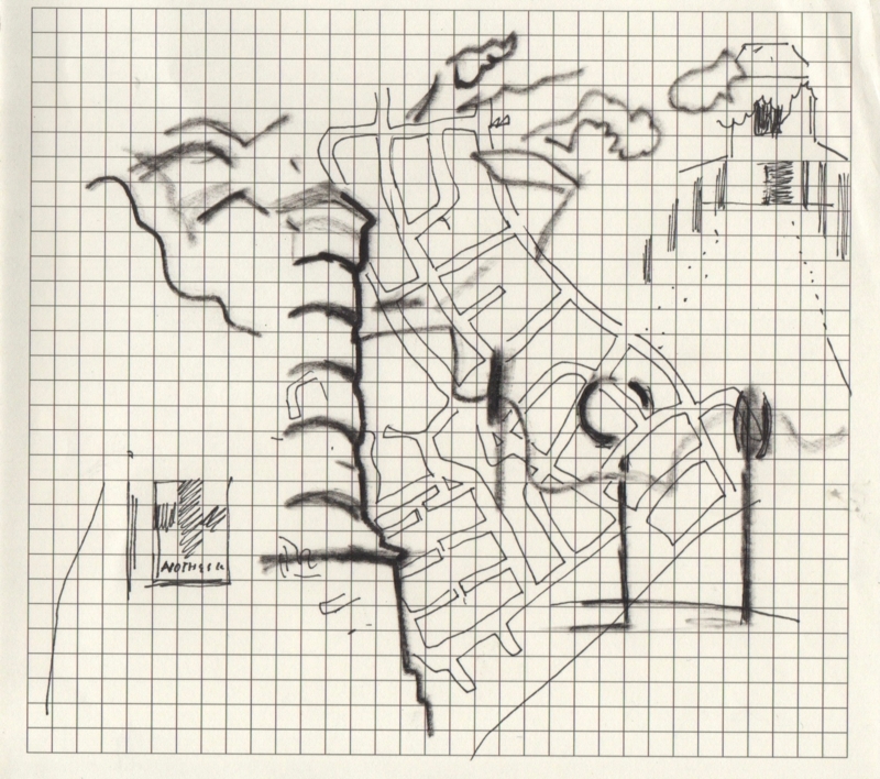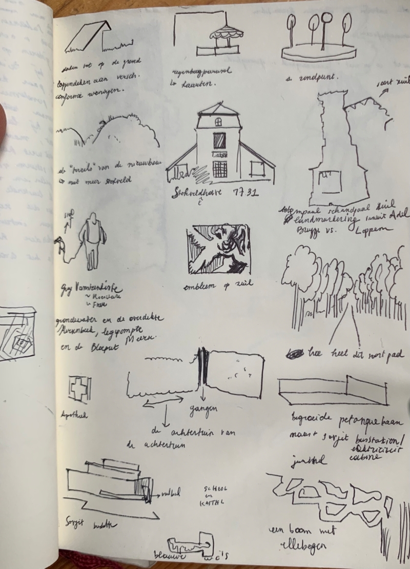 Mijn werkproces tekent zich voornamelijk door het verzamelen van dit soort zwaartepunten in de wijk. Al hoeven die zeker niet architecturaal te zijn. Minder statische bezienswaardigheden zoals een gekke parasol of een stoel op een dak verzamel ik ook. Of verhalen van de bewoners. Of de opgezette vos achter een raam die ik ooit zag maar niet meer weet waar. De bedoeling is om de verzamelde plekjes of dingetjes naar beeldend werk te vertalen, deze met elkaar te linken en ten slotte uit te zaaien op andere plekken in de wijk. Hopelijk ontstaat er hierdoor beweging. Dat het ene werk een reden is om tot aan een andere plek in de wijk te wandelen.