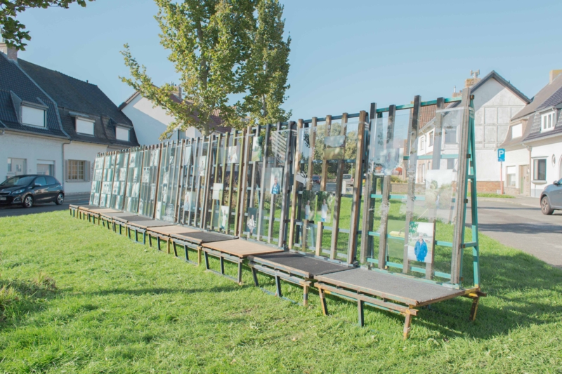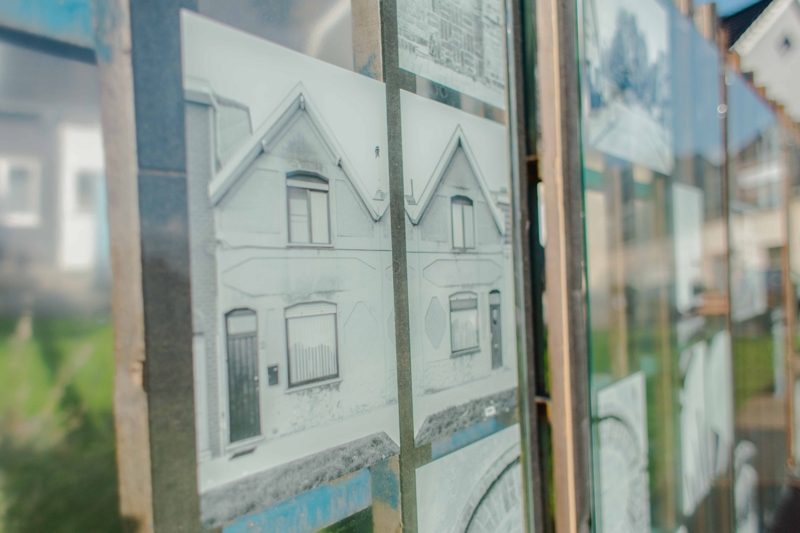 Het fotografisch werk dat ik presenteer, verbindt verschillende elementen uit de buurt. De patronen in de gevels van de cité zijn gebouwd volgens spiegelbeeld. Later zien we dat voor het voortbestaan van zowel de fabriek als de werkgelegenheid, de productie van glas eind jaren ‘70 werd stopgezet om over te stappen naar het verzilveren van geïmporteerd glas tot spiegels. Alles lijkt op elkaar maar is tegelijk ook helemaal anders. Ook de verhalen van de (voormalige) werknemers vertonen die schijnbare gelijkenissen.