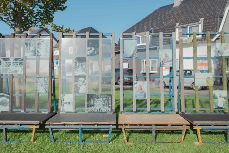 Zwankendamme is de glasfabriek en vice-versa. Voor veel inwoners was hun privéleven en het werk sterk verbonden door de – letterlijk – korte afstand tussen beide. Met mijn foto’s probeer ik verwondering op te wekken over dat wat ze al hun hele leven kennen. Herkennen ze zichzelf en hun dorp in mijn foto’s? Wat brengen de beeldcollages teweeg?
