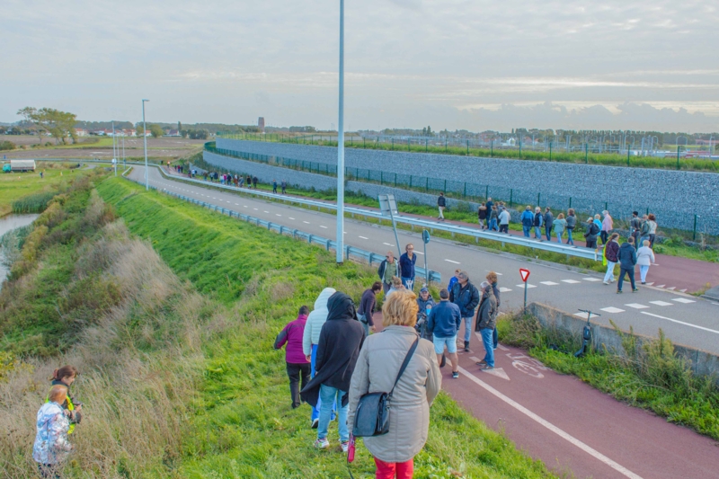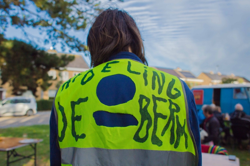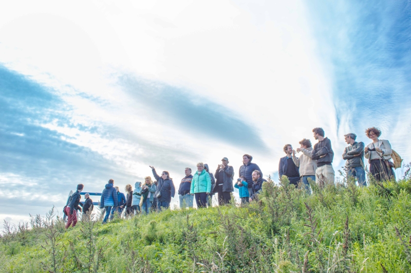 Tijdens het slotweekend organiseren we op zaterdag de actie Allemaal op de berm. We nodigen iedereen die op dat moment aanwezig is in Zwankendamme uit om samen op de berm te gaan staan. Daar kijken we uit op de omgeving en beschouwen deze als een sculptuur, als een landschap dat wij als mensen vormgeven en bewonen, een landschap dat continu in transformatie is, een krachtenveld van machtsrelaties die een plek inrichten.