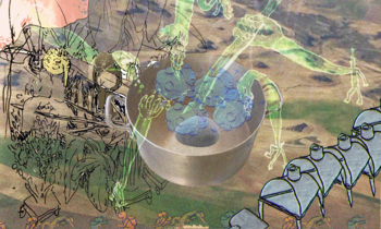 Inés en Michela zetten eten en onze eetcultuur in als artistiek medium, en onderzoeken zo lokale kennis rondom eetbare planten en hoe deze gedeeld kan worden. Ze sloten hun project af met een zelfgeprinte publicatie waarin recepten gecombineerd worden met tekeningen van de lokale planten en de instrumenten die ze gebruikten.